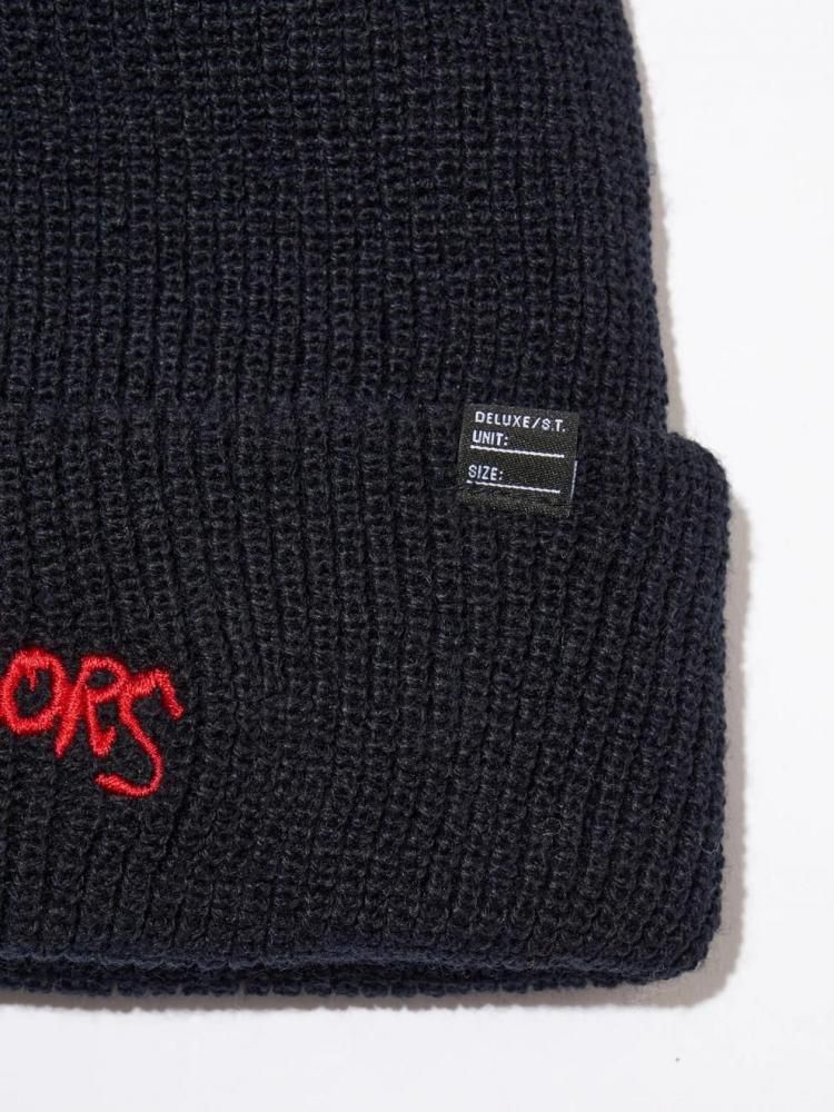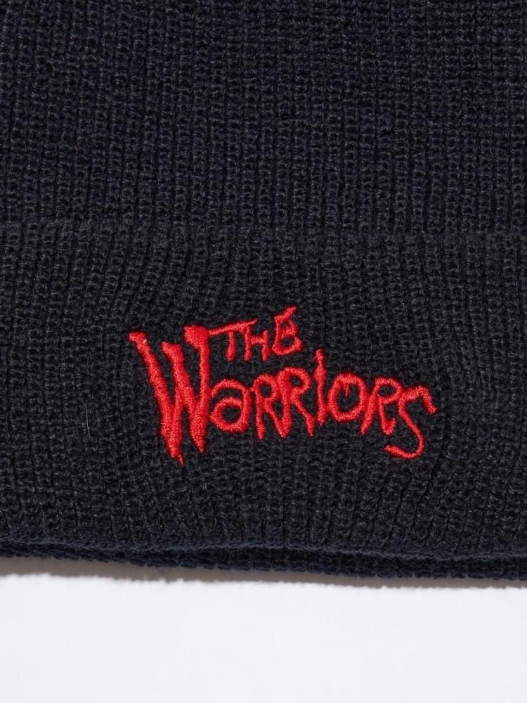 折り返しパネルのニットビーニー。フロントパネルにWarriorsロゴを直刺繍、リブ右上にピスネームを挟み込み。2色1サイズ展開。1979年公開のアメリカ映画『THE Warriors』とのオフィシャルコラボレーションモデル。
