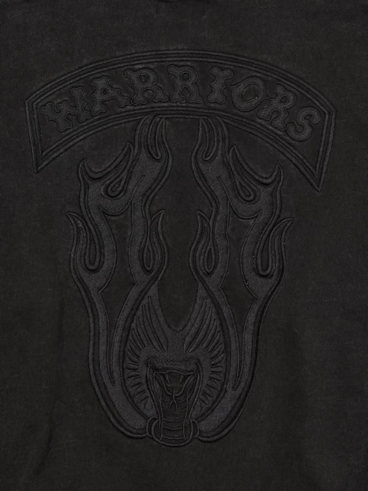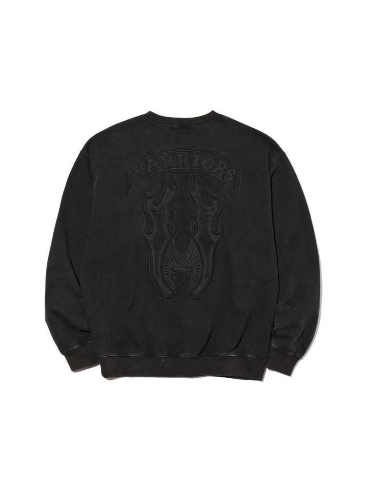 オリジナルで作成した肉厚なコットン裏毛素材を使用したクルーネックスウェットシャツ。身頃全体にピグメント加工を施し、ヴィンテージな風合いに仕上げた。フロントにWarriorsロゴ、背面にエンブレムモチーフを立体感のある刺繍で表現したデザイン。左袖にブランドロゴ、前身頃右下にコピーライトロゴをラバープリントで配置。身幅にゆとりのあるシルエット。2色4サイズ展開。1979年公開のアメリカ映画『THE Warriors』とのオフィシャルコラボレーションモデル。