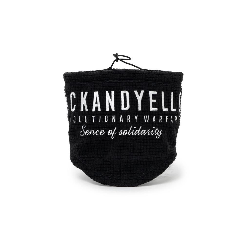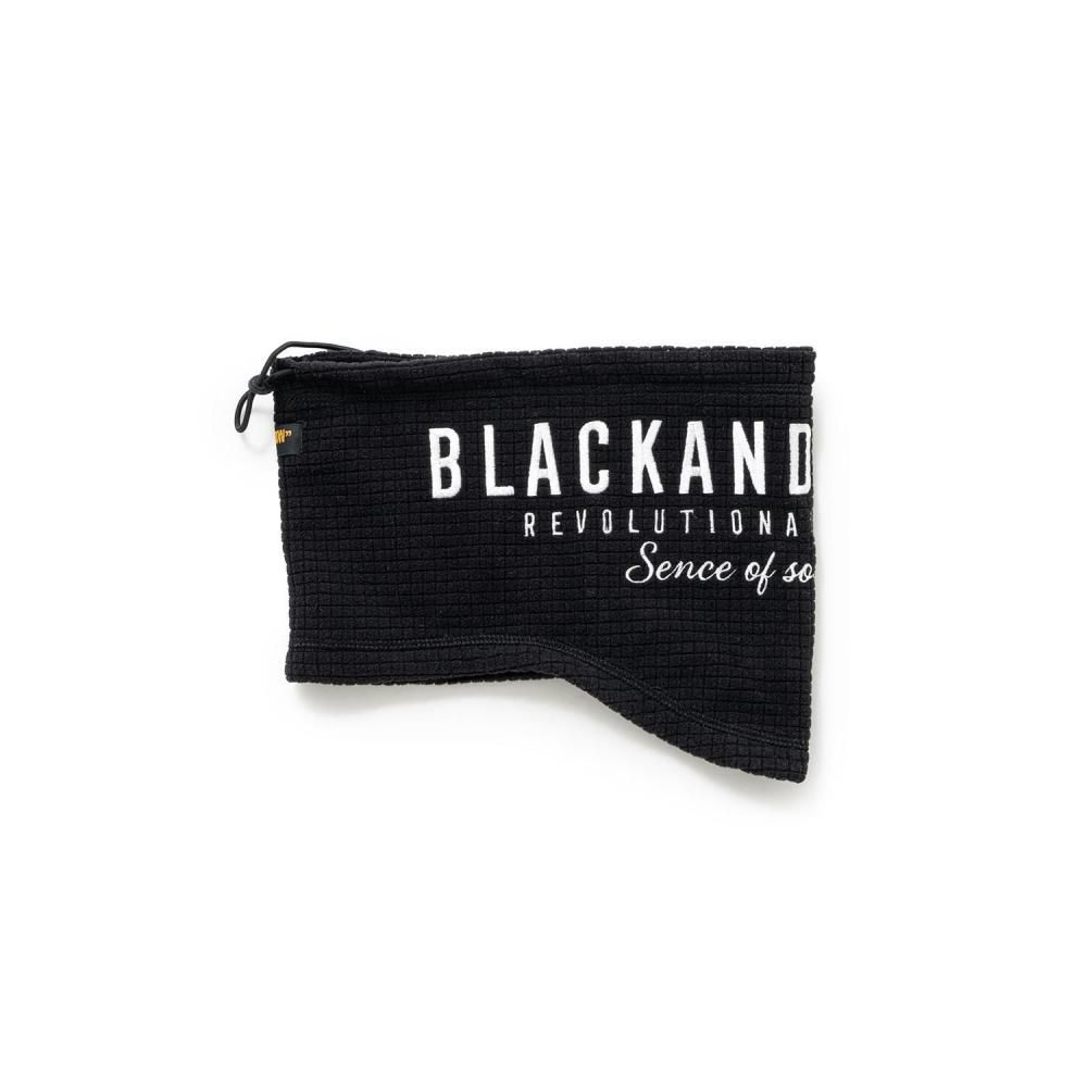 表地にブロックフリース、裏地に肌触りの良いマイクロフリースを使用した2レイヤーのネックウォーマー。正面にBLACK AND YELLOW・レターグラフィックを直刺繍、背面中央に織りネームを叩きつけ。内側にスピンドルが付属し、シルエット調整が可能。1色1サイズ展開。