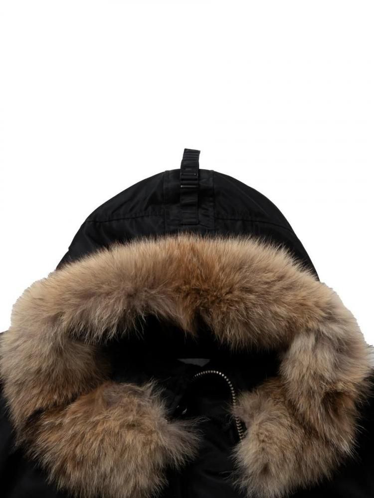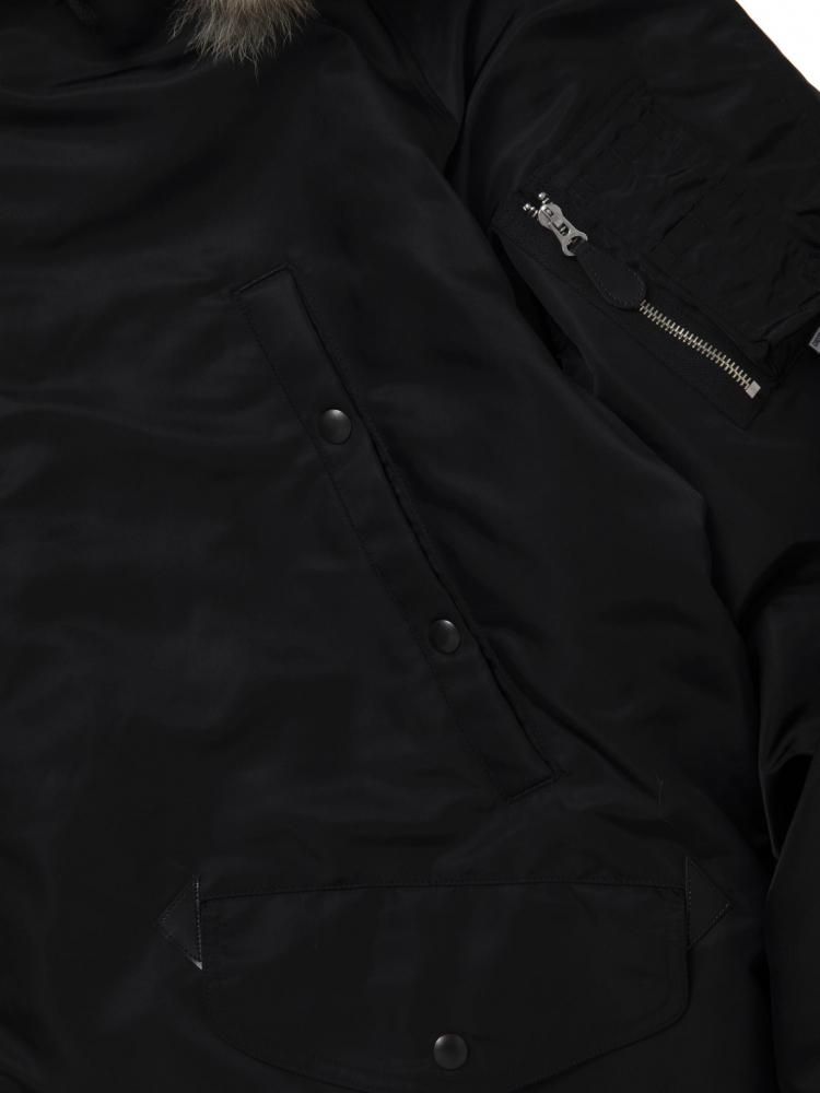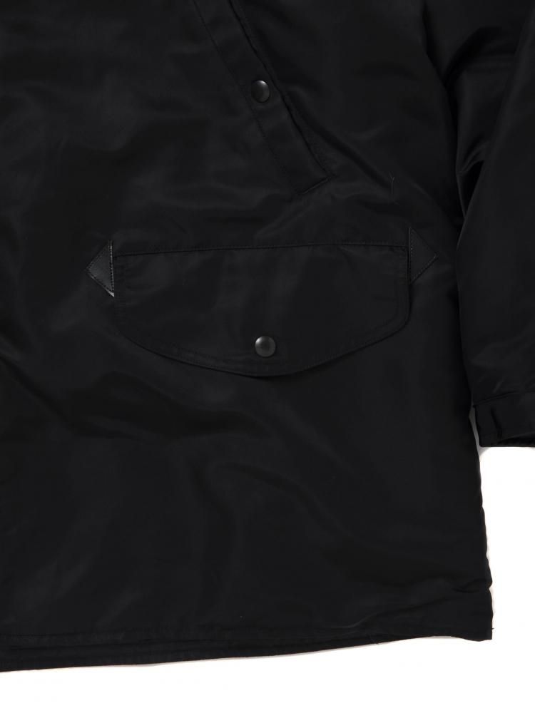 耐摩擦性に優れた66ナイロンを使用し作成された高密ナイロンツイルを使用。中綿には撥水性、透湿性に優れたフリースを使用。フード端にはリアルコヨーテファーを使用。ワイドシルエット。